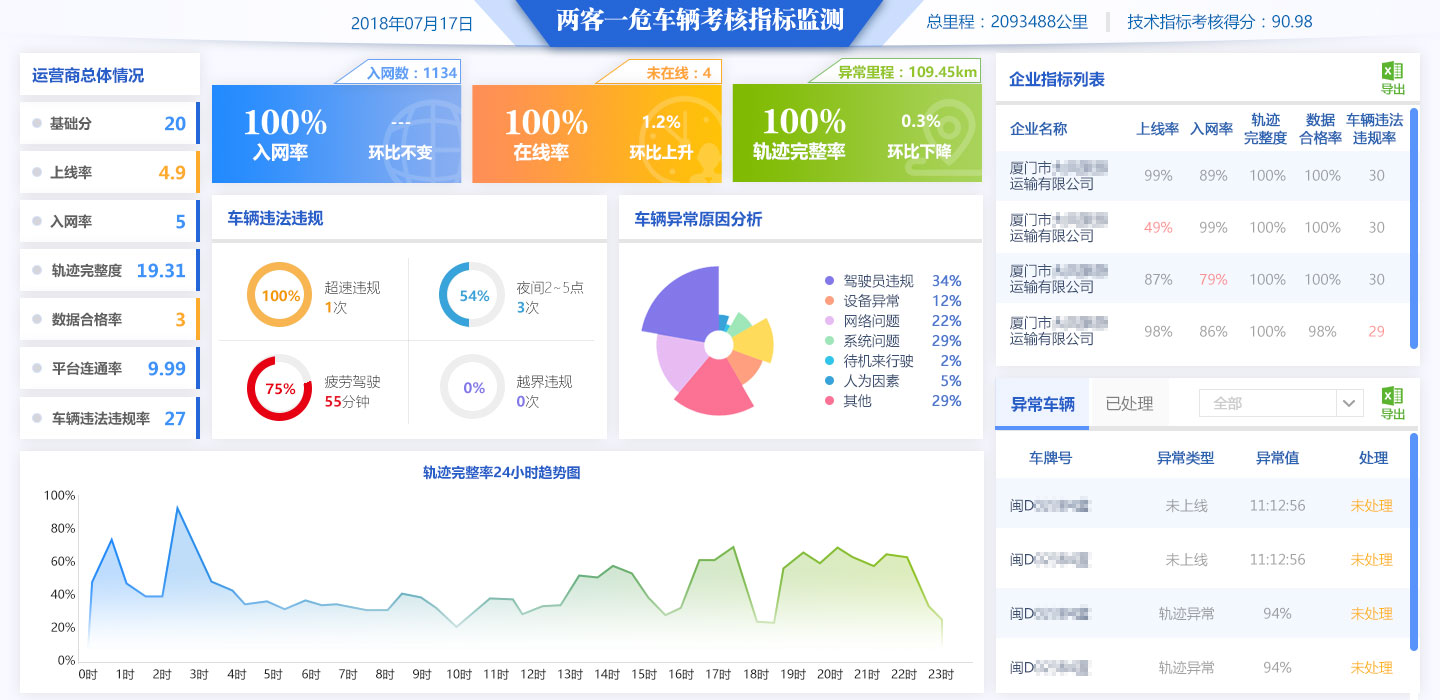 2019年11月,我司在福建省廈門市建設(shè)了廈門市重點(diǎn)營(yíng)運(yùn)車輛行業(yè)監(jiān)測(cè)處置系統(tǒng),該項(xiàng)目采用統(tǒng)一的車載終端標(biāo)準(zhǔn)和動(dòng)態(tài)監(jiān)管平臺(tái),采集全市重點(diǎn)營(yíng)運(yùn)運(yùn)輸車輛數(shù)據(jù),將運(yùn)輸企業(yè)基礎(chǔ)數(shù)據(jù)和車輛行駛等動(dòng)態(tài)數(shù)據(jù)納入監(jiān)管系統(tǒng)并進(jìn)行綜合處理分析,并接入車載主動(dòng)安全報(bào)警數(shù)據(jù),實(shí)現(xiàn)全流程閉環(huán)管理。同時(shí),系統(tǒng)引用省廳考核機(jī)制,將共享車輛違規(guī)數(shù)據(jù)反饋給企業(yè)及運(yùn)營(yíng)商,以此建立企業(yè)和運(yùn)營(yíng)商同步指標(biāo)考核機(jī)制,促進(jìn)監(jiān)管與服務(wù)同步發(fā)展,將單一的管控平臺(tái)轉(zhuǎn)化為監(jiān)管與服務(wù)一體化的全方位平臺(tái)。